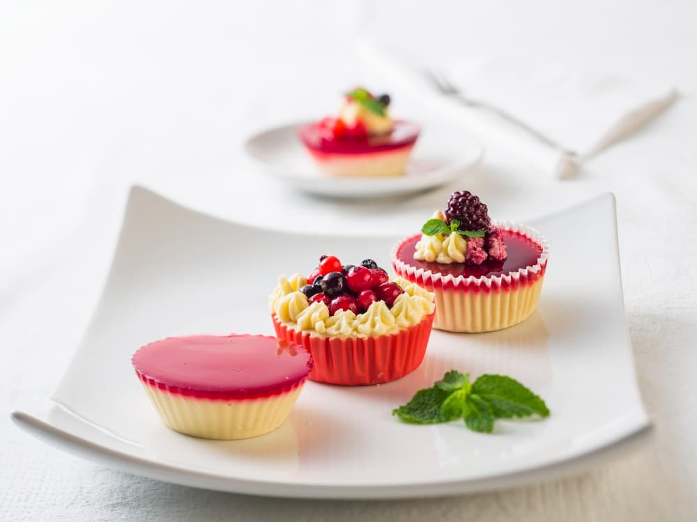 - Krém v košíčkách můžeme nejprve poklást různými druhy ovoce a teprve pak ho zalít agarem.